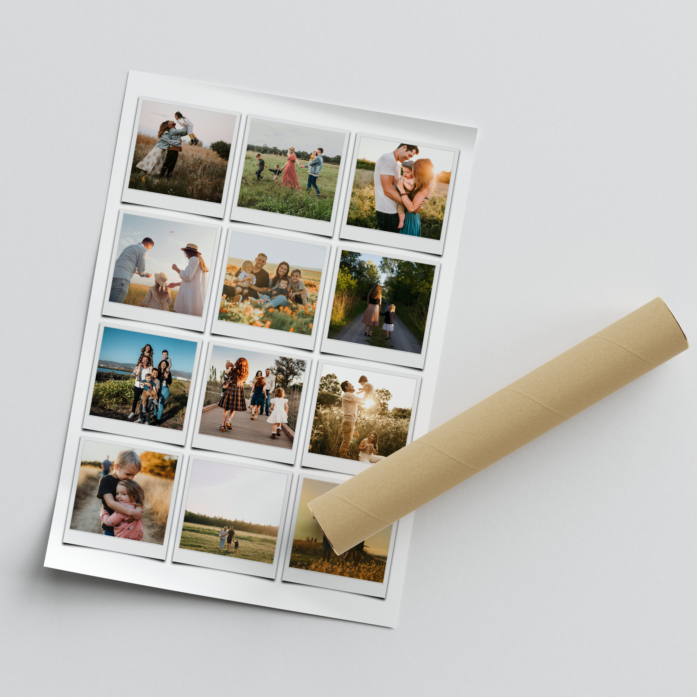 Familienmomente im Polaroid-Stil – Collage und einzelne Polaroids liebevoll beschriftbar.