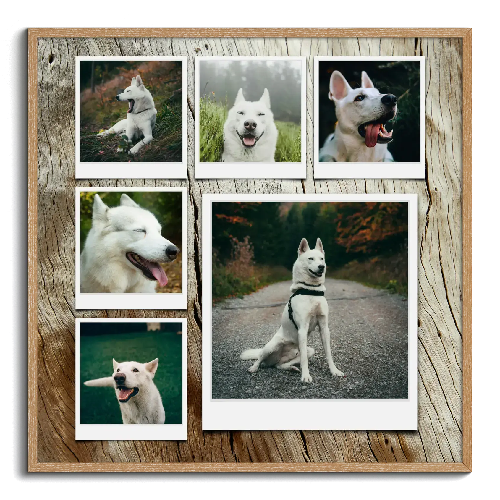 Fotocollage vom Hund als Polaroid, Raster oder mit Hintergrundbild – liebevoll personalisierbar.