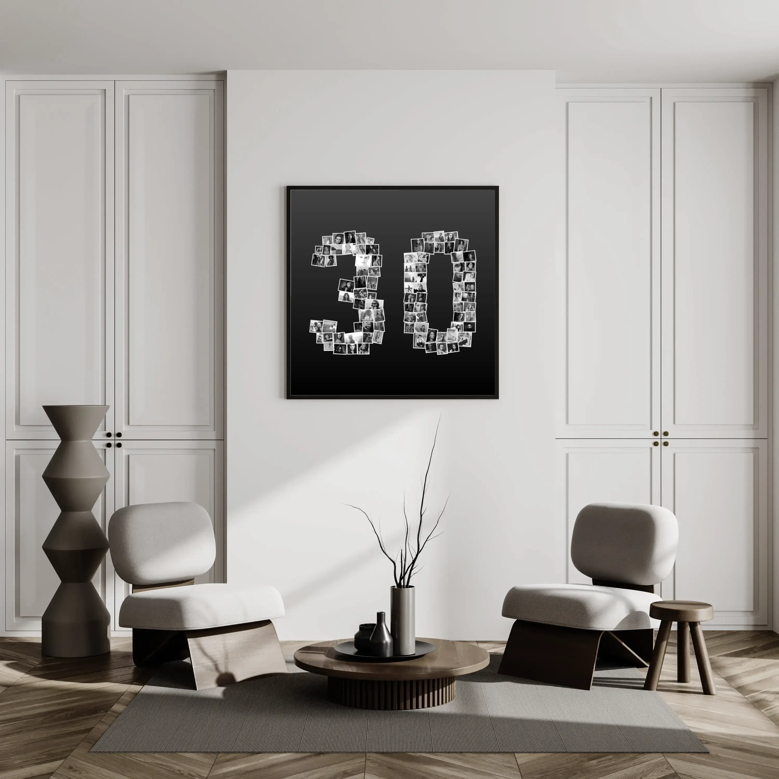 Fotocollage Zahl "30" erstellen. Geburstagsgeschenk, individuell mit 1-100 Bildern