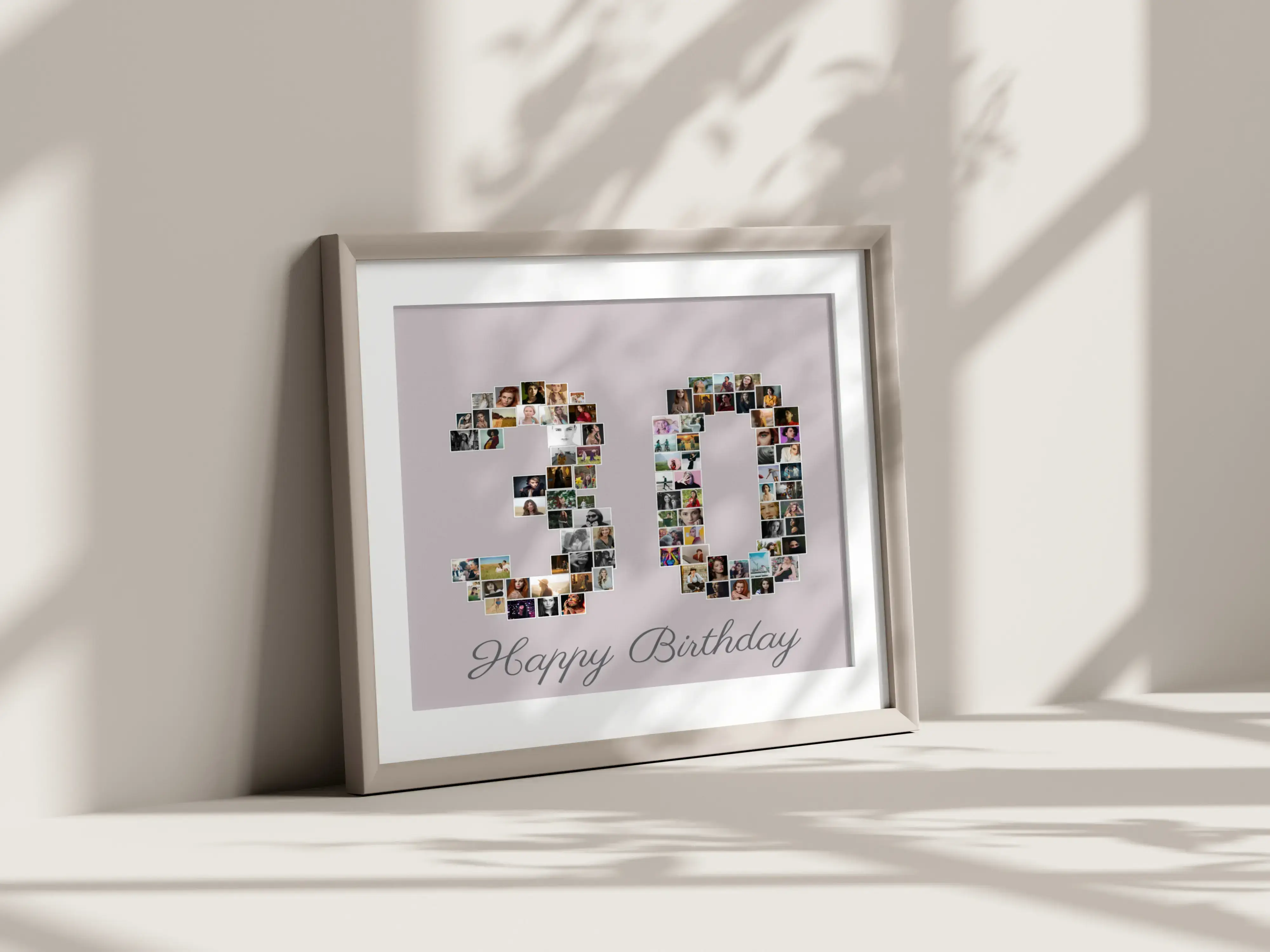 Die '30er' Zahlencollage ist eine ideale Geschenkidee für eine Vielzahl von Anlässen. Besonders für runde Geburtstage, Hochzeitstage oder Jubiläen sind sie ein Highlight. Verewige die Schönheit deiner Momente in einer einzigartigen Collage und schenke etwas, das wirklich von Herzen kommt.