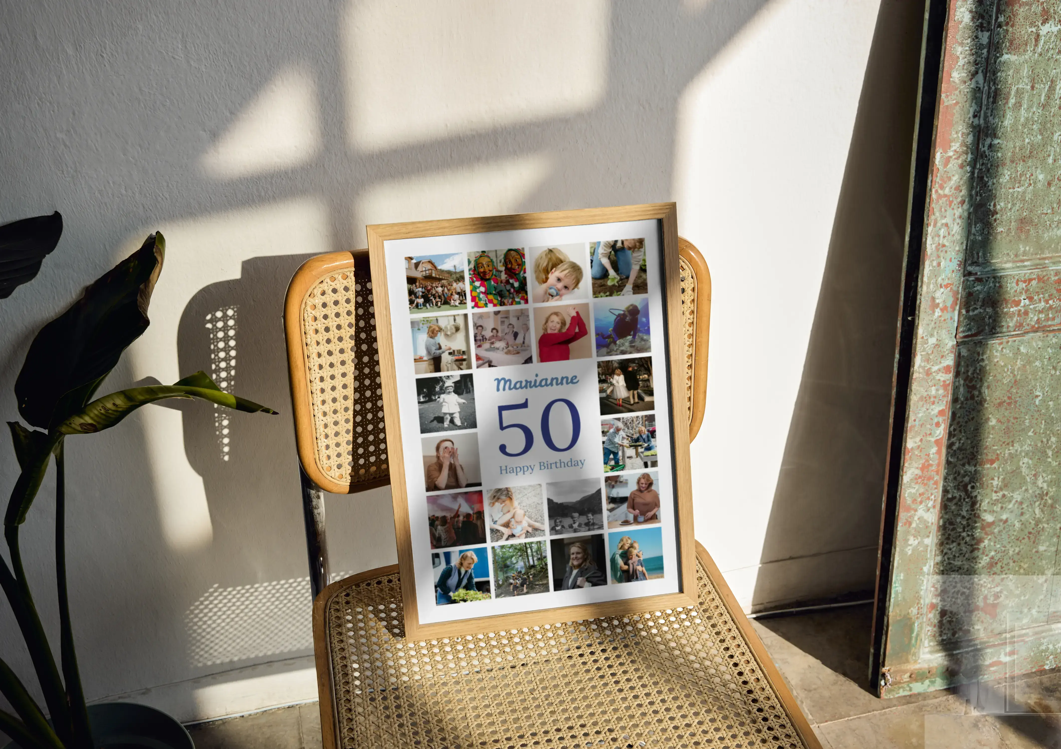 Zahlen-Collage zum 50. Geburtstag: große 50, Name, Gruß, 20–80 Fotos – individuell anpassbar