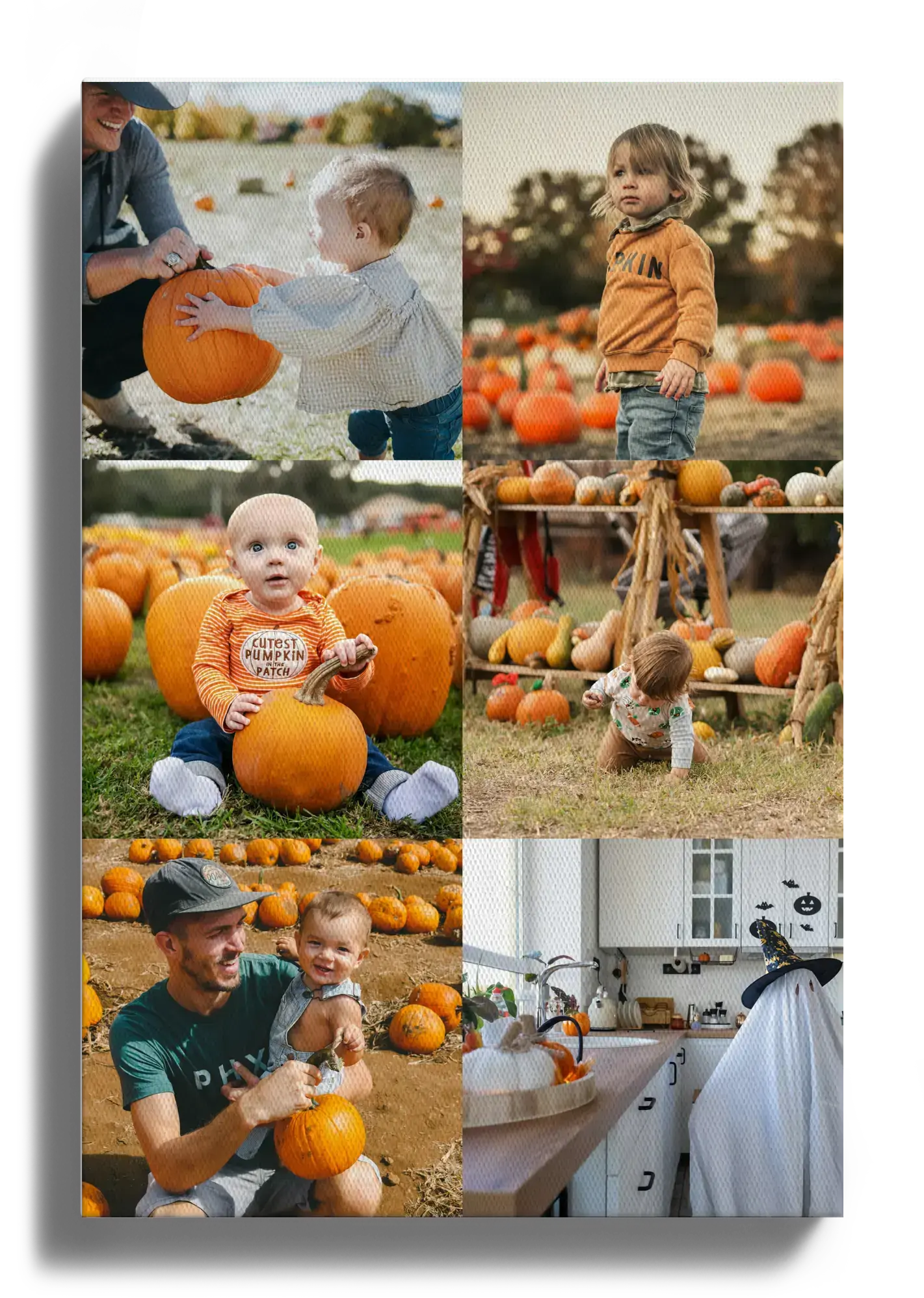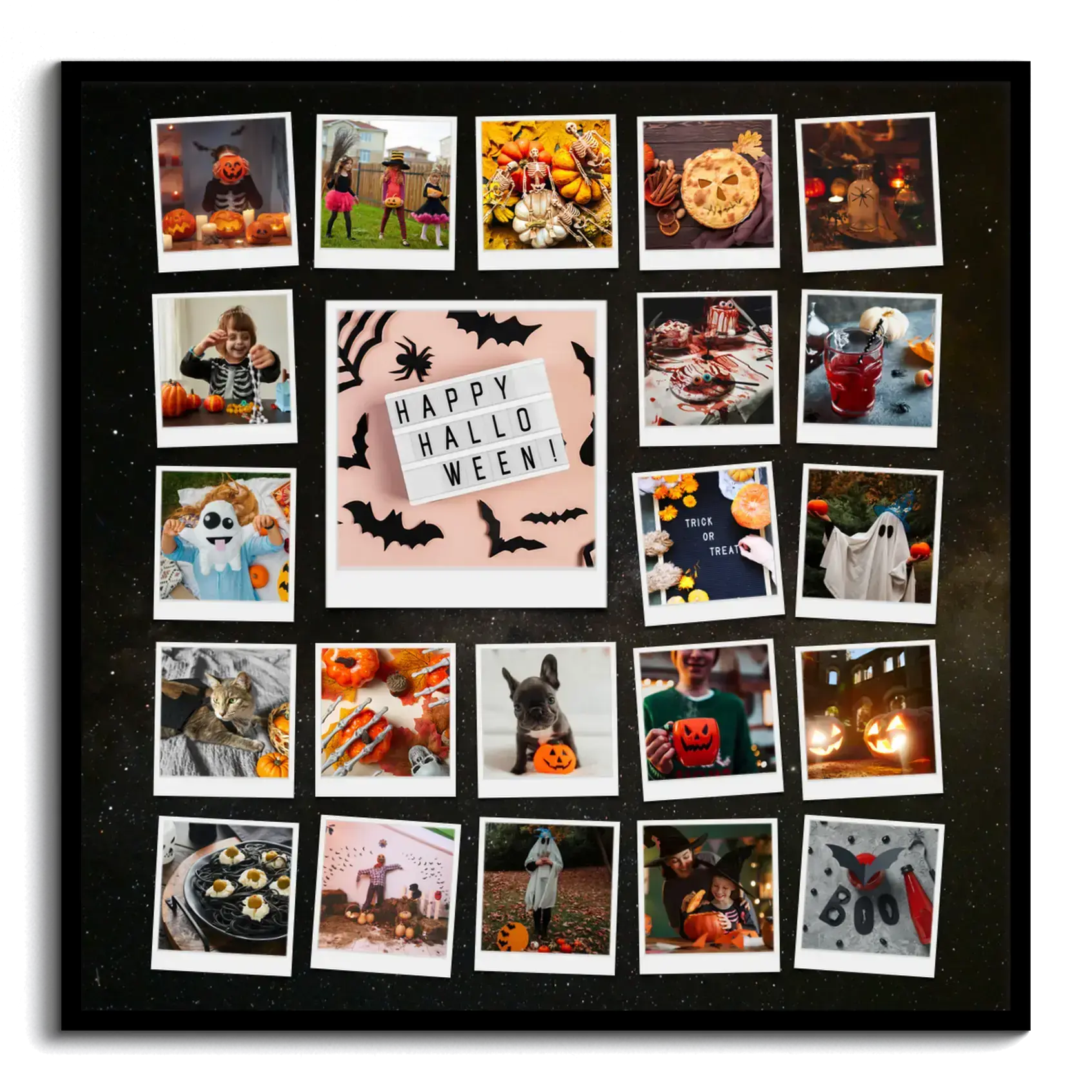 Gestalte deine persönliche Halloween-Fotocollage mit nur wenigen Klicks! Sammle zauberhafte Momente deiner Familie und Freunde, die in schaurigen Kostümen für unvergessliche Erinnerungen sorgen. Verleihe deiner Collage eine persönliche Note mit witzigen oder gruseligen Texten, wie zum Beispiel Süßes oder Saures. Deine Collage wird zum Blickfang in jedem Raum und sorgt garantiert für gute Laune.