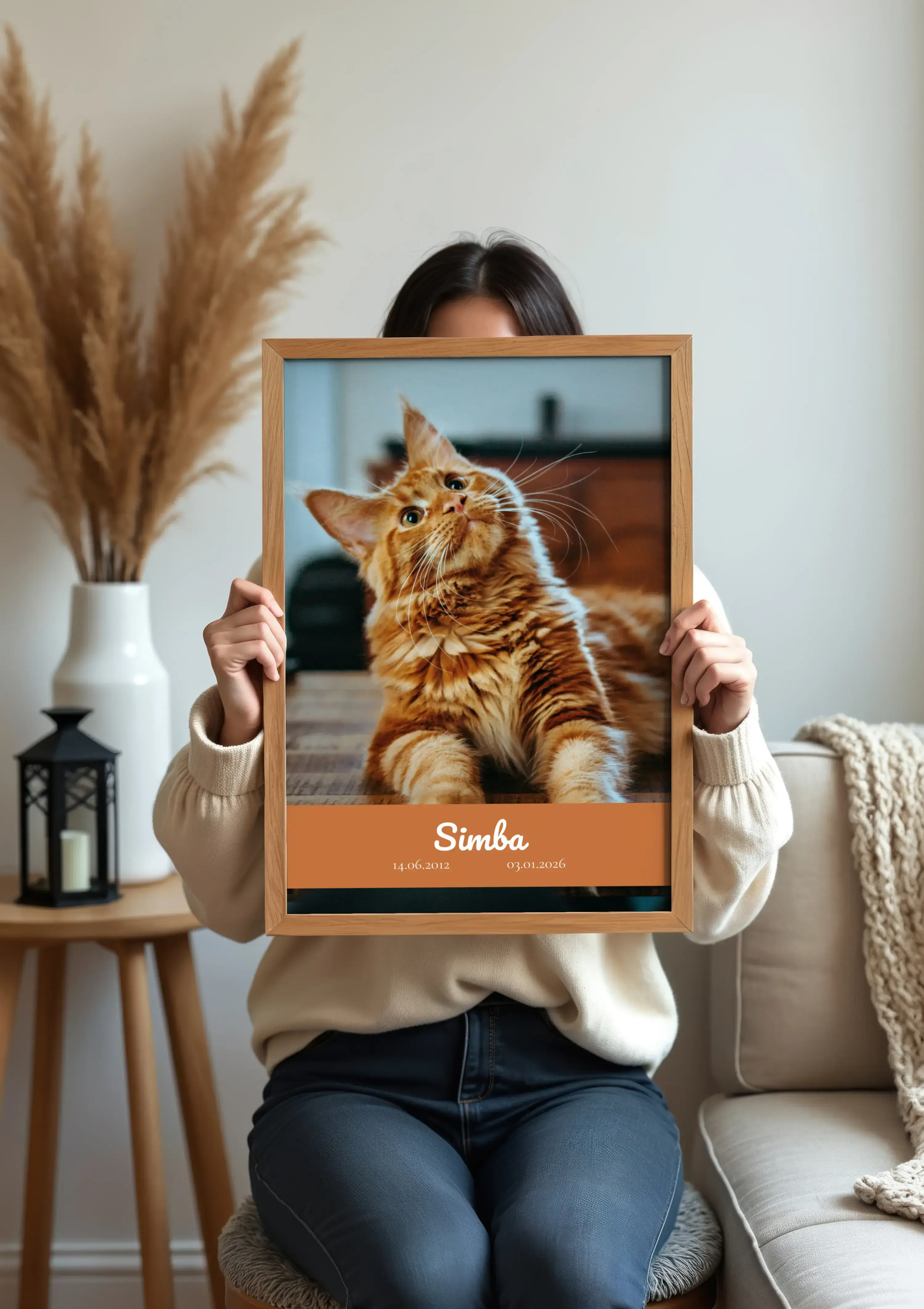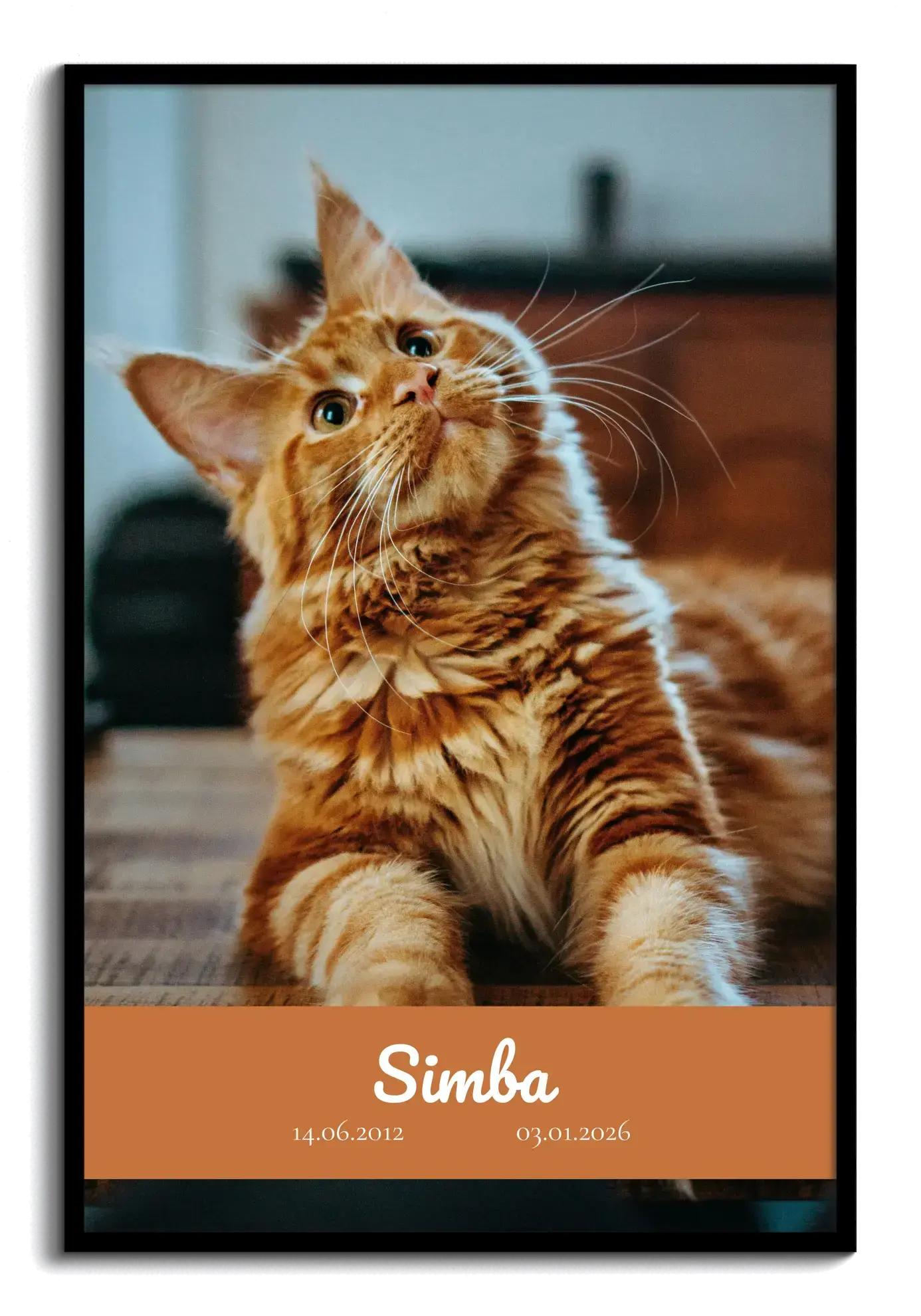 Gedenk-Collage Katze jetzt gestalten – Einzelbild, Textbalken: dein Foto, Name & Daten