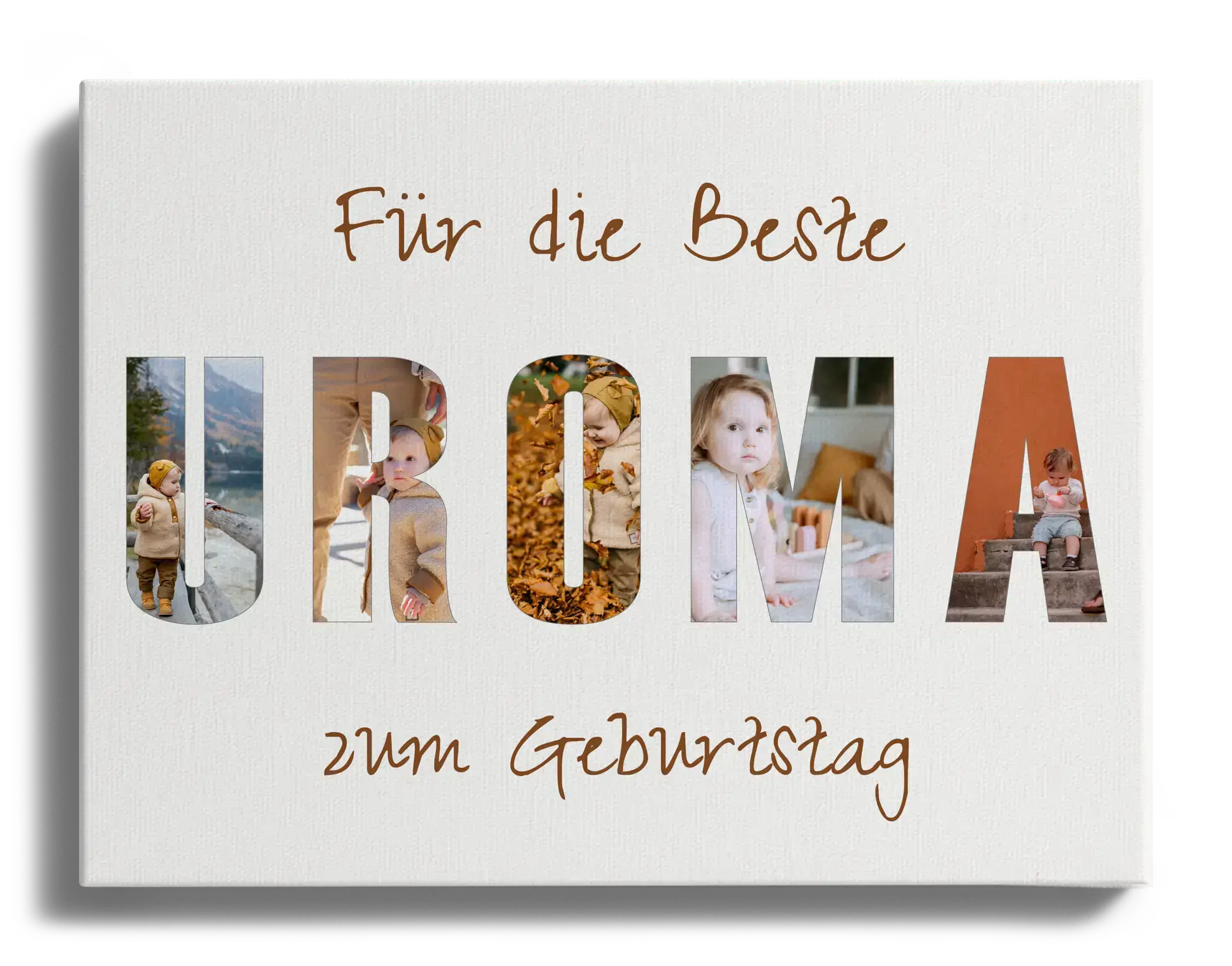 Buchstabencollage UROMA mit 5 Fotos von Uroma und Urenkel – personalisiert zum Geburtstag