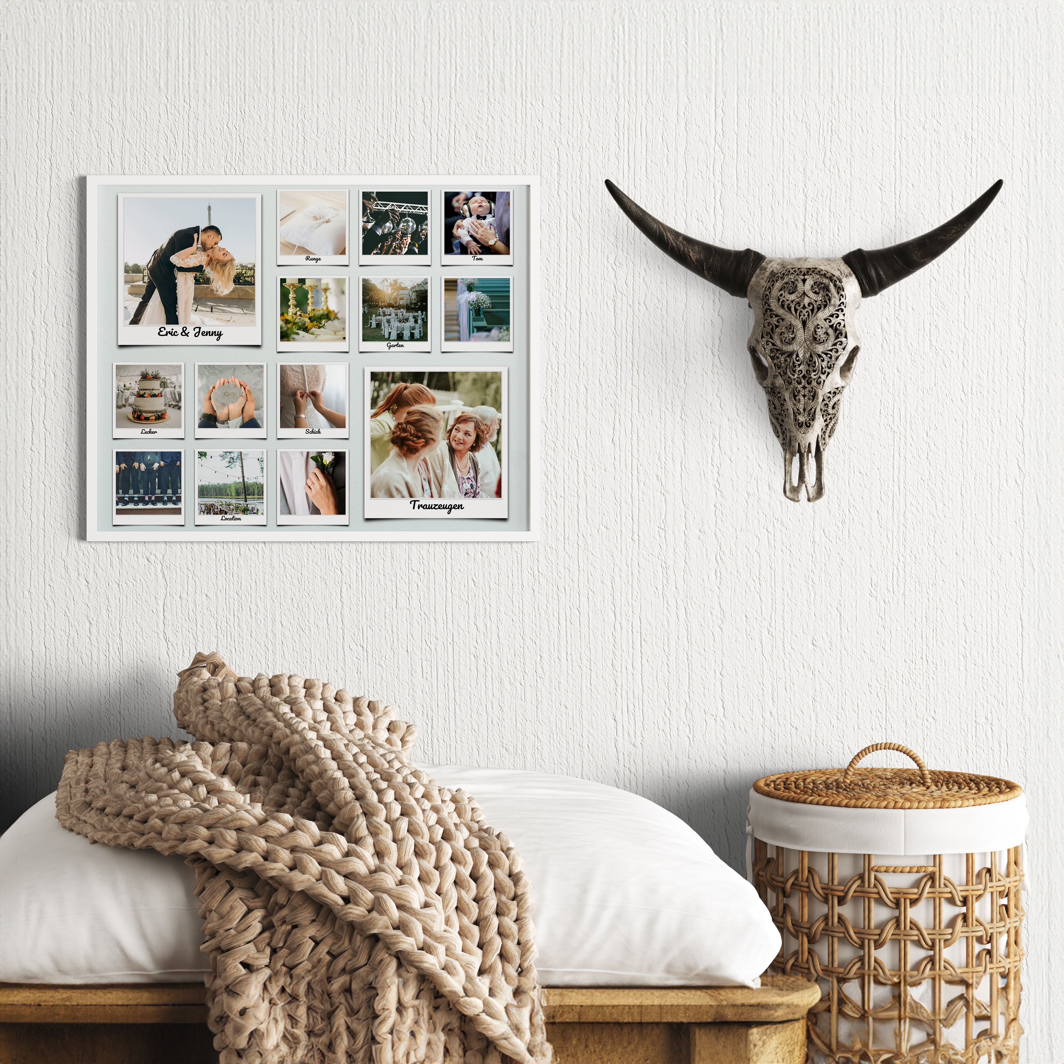 Verewige die schönsten Momente deines besonderen Tages mit unserer Hochzeits-Fotocollage! Mit ungefähr 40x60 cm bietet sie genug Platz, um all die wertvollen Erinnerungen zu teilen, die du sammeln wirst. Hier kannst du eine wunderbare Gästebuch-Kollage mit Polaroidstil-Fotos deiner liebsten Momente, all der lachenden Gesichter und tanzenden Gäste gestalten, die du nie vergessen möchtest.