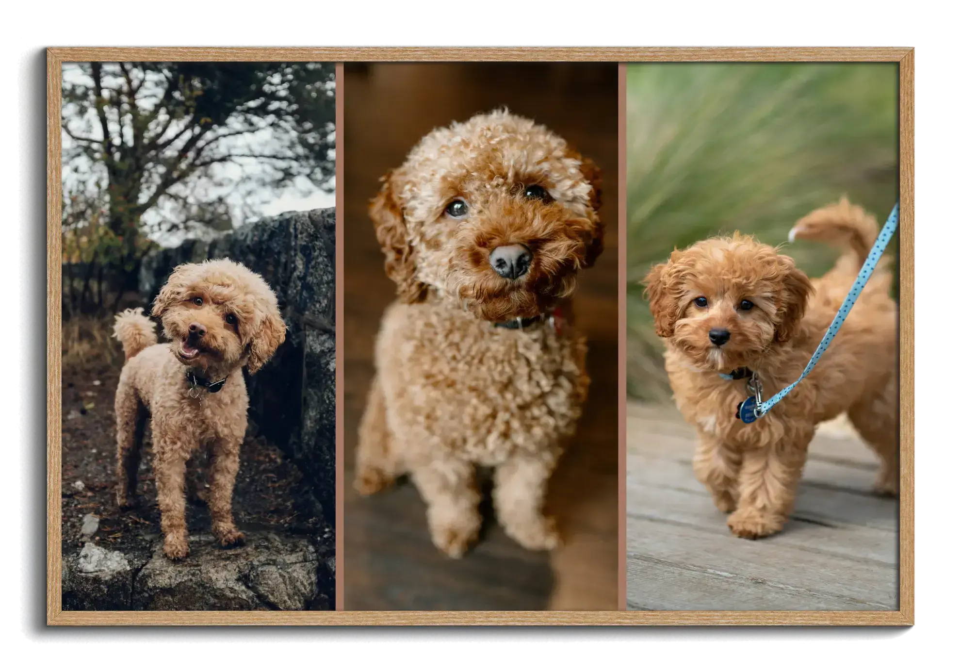 Gestalte jetzt deine ganz persönliche Hundecollage und setze deinen Liebling genau so in Szene, wie er zu euch passt. Ob als Herz für Hundemamas und Hundepapas, mit drei Szenen nebeneinander oder im Look vieler Vintage-Polaroids: Du bestimmst Stil, Bildanzahl, Format und Details selbst.