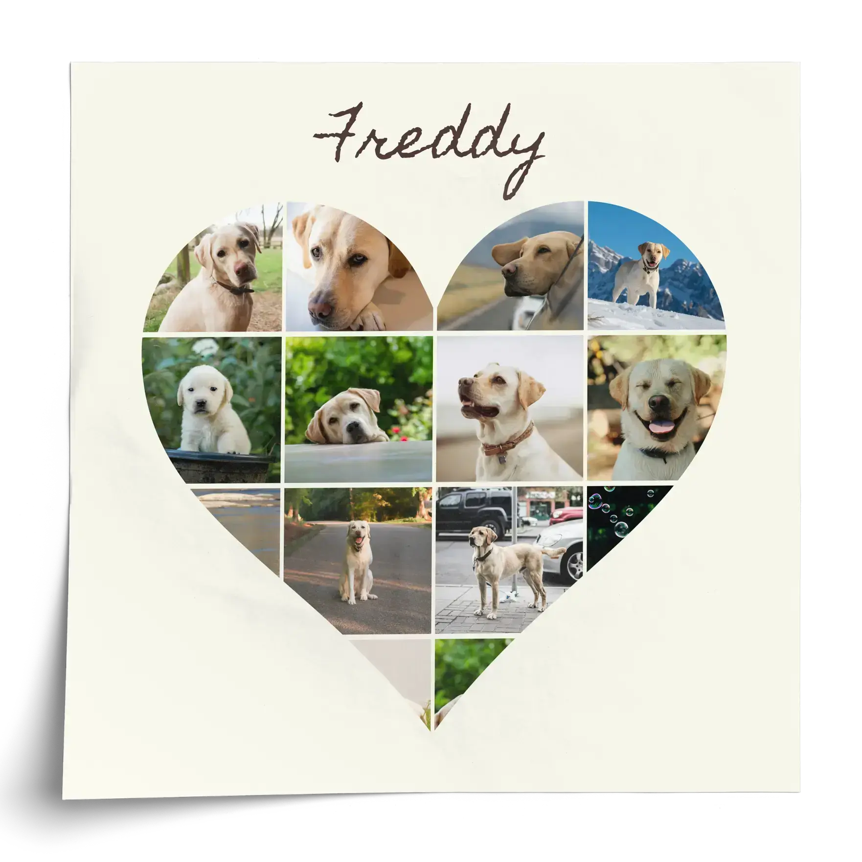 Für Hundemamas und Hundepapas: Lieblingshunde als Herz, Dreierbild oder Vintage-Polaroids.