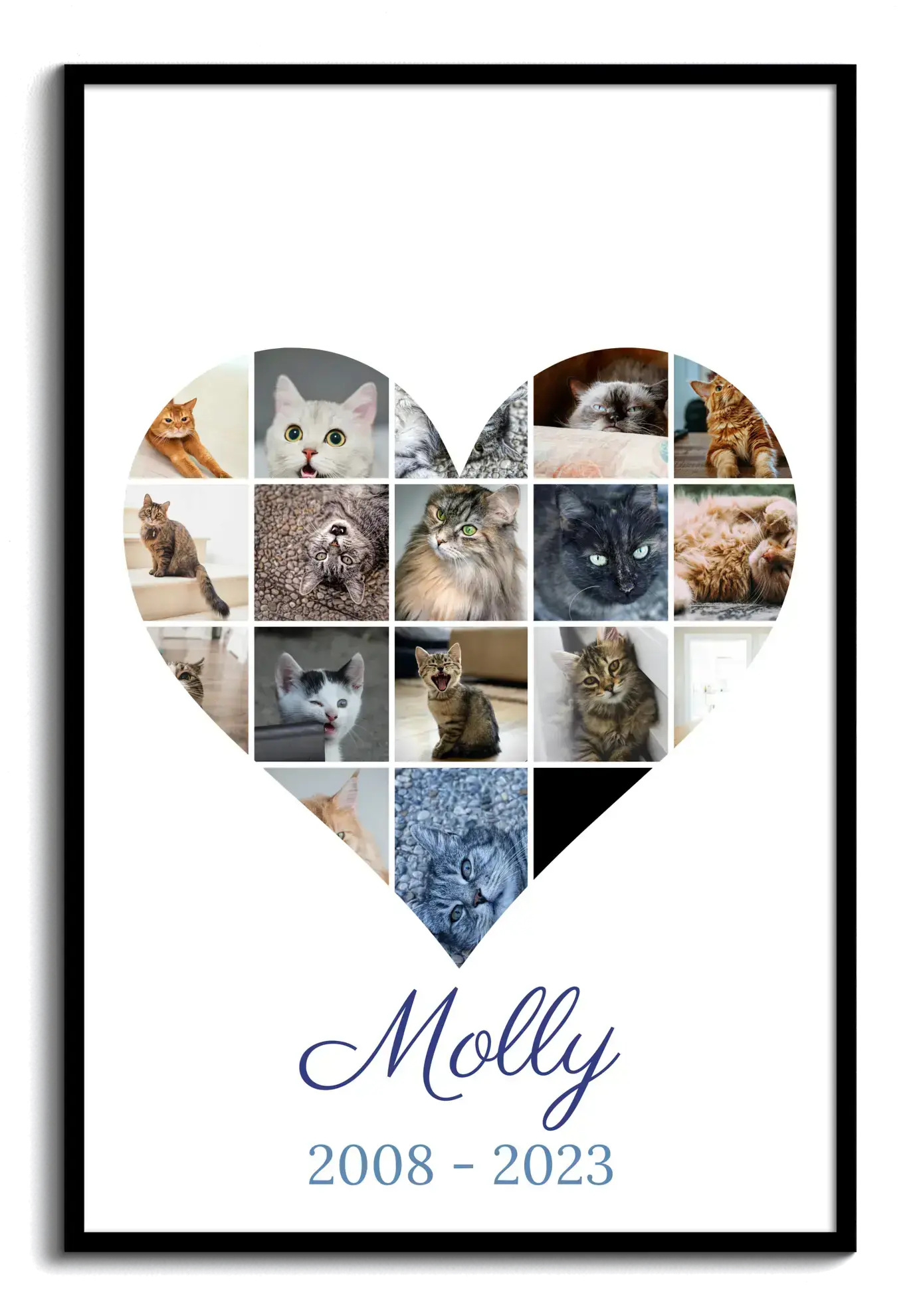 Trauer Fotocollage Katze – gestalte jetzt als Poster mit Name, Jahreszahlen, Spruch