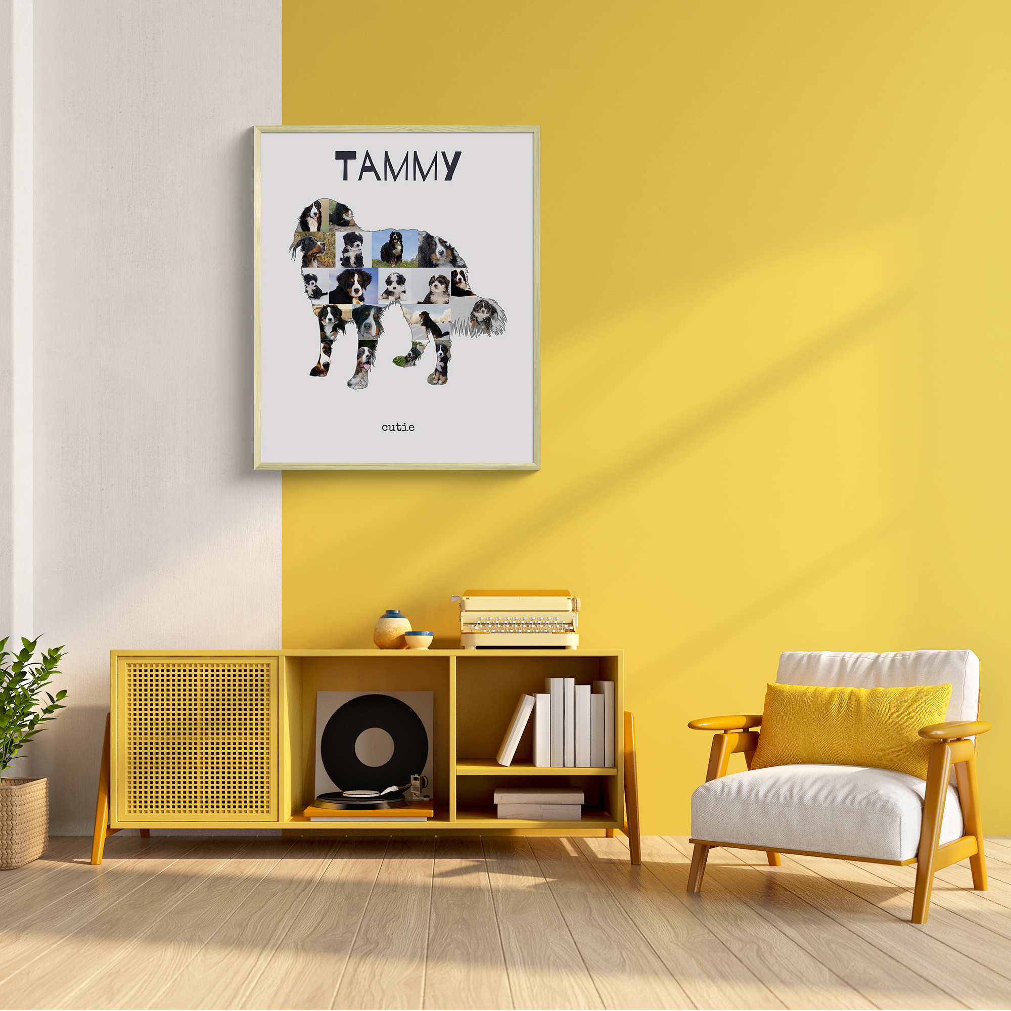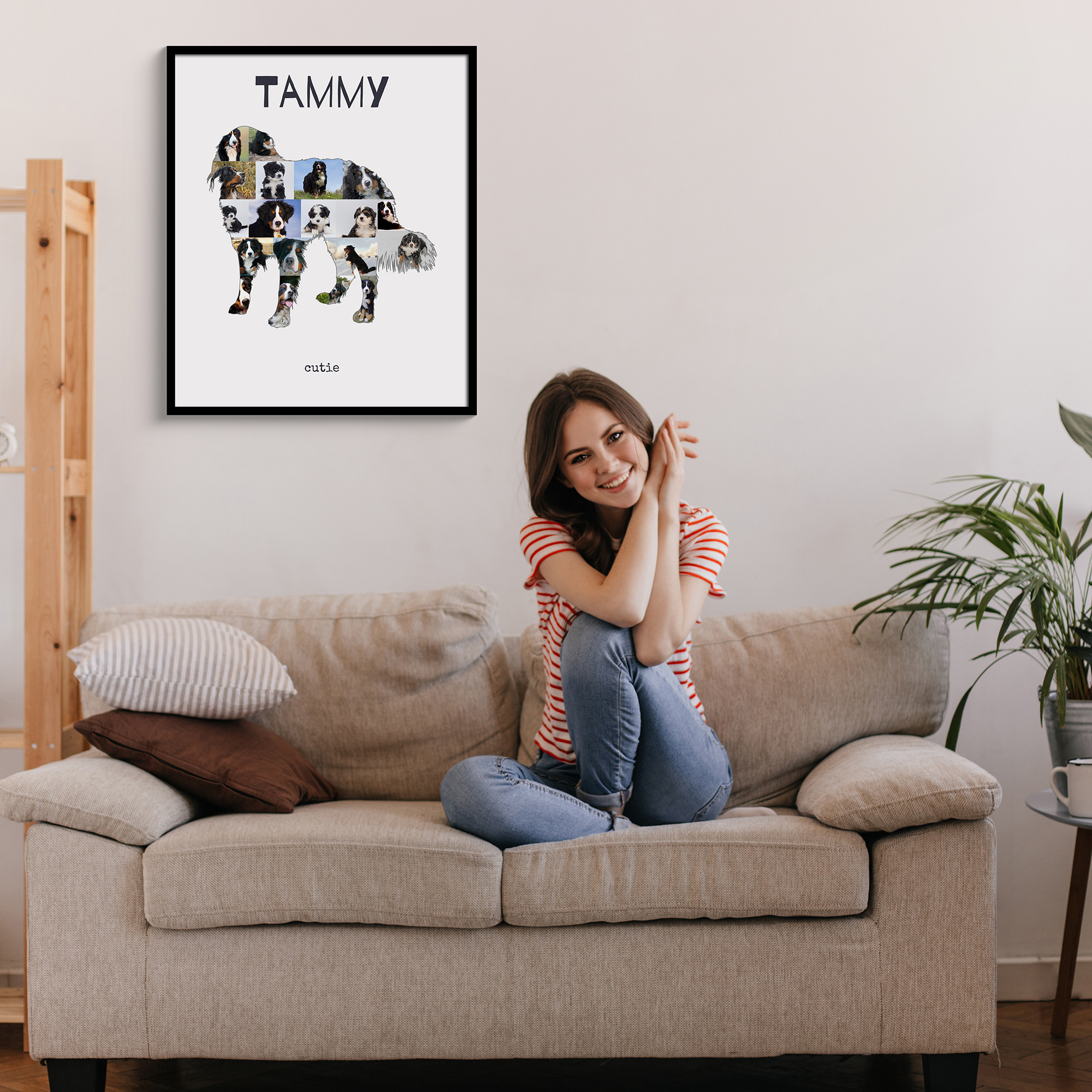 Lass dein Herz für deinen treuen Vierbeiner sprechen und verewige die schönsten Augenblicke mit ihm in einer personalisierten Fotocollage. Ob Spaziergang im Park, Kuschelstunden auf dem Sofa oder lustige Momentaufnahmen - dieser Berner Sennenhund wartet darauf, mit euren gemeinsamen Erinnerungen ausgefüllt zu werden.