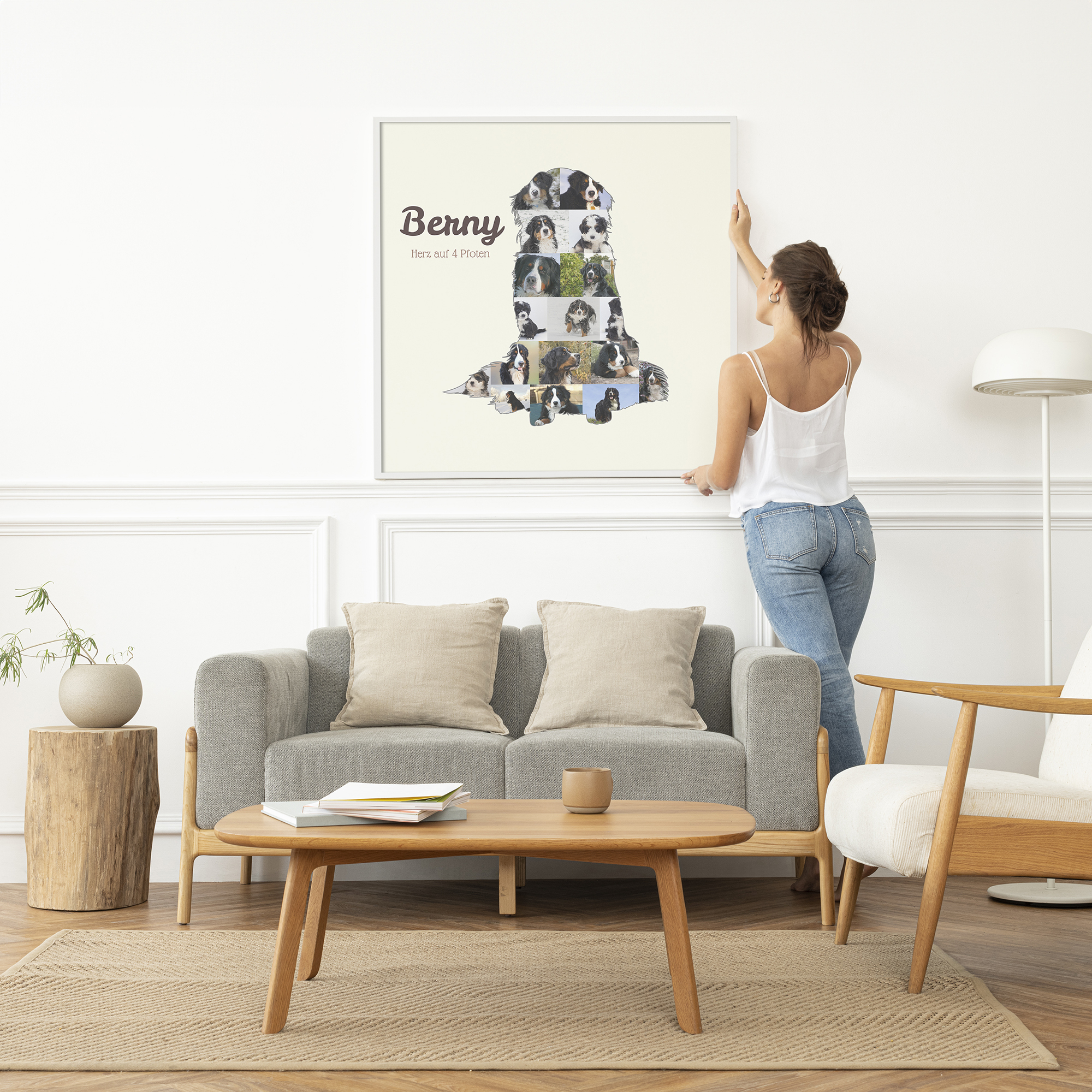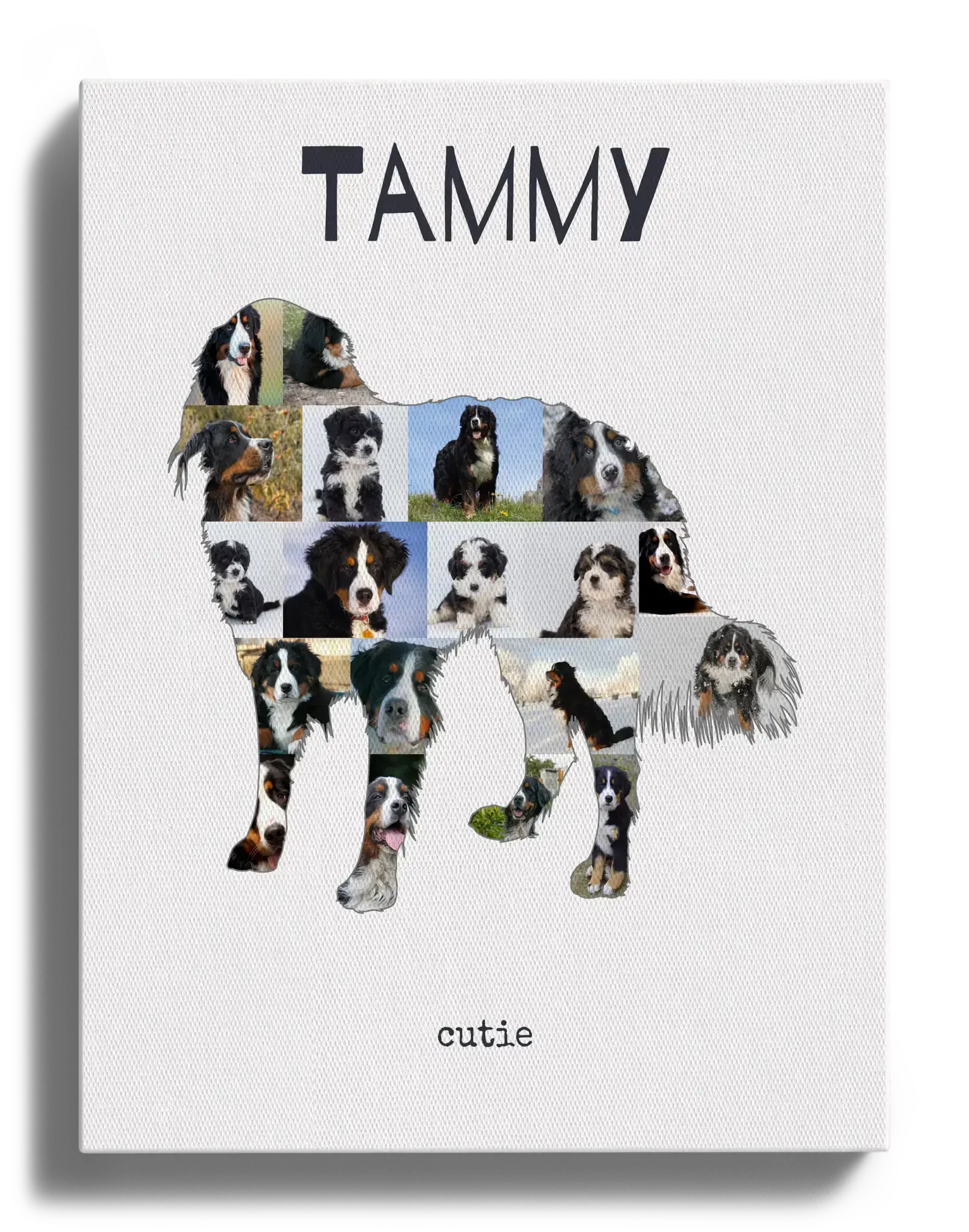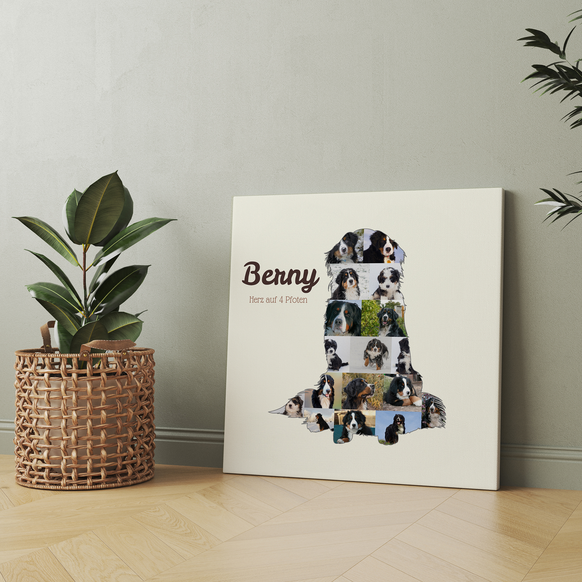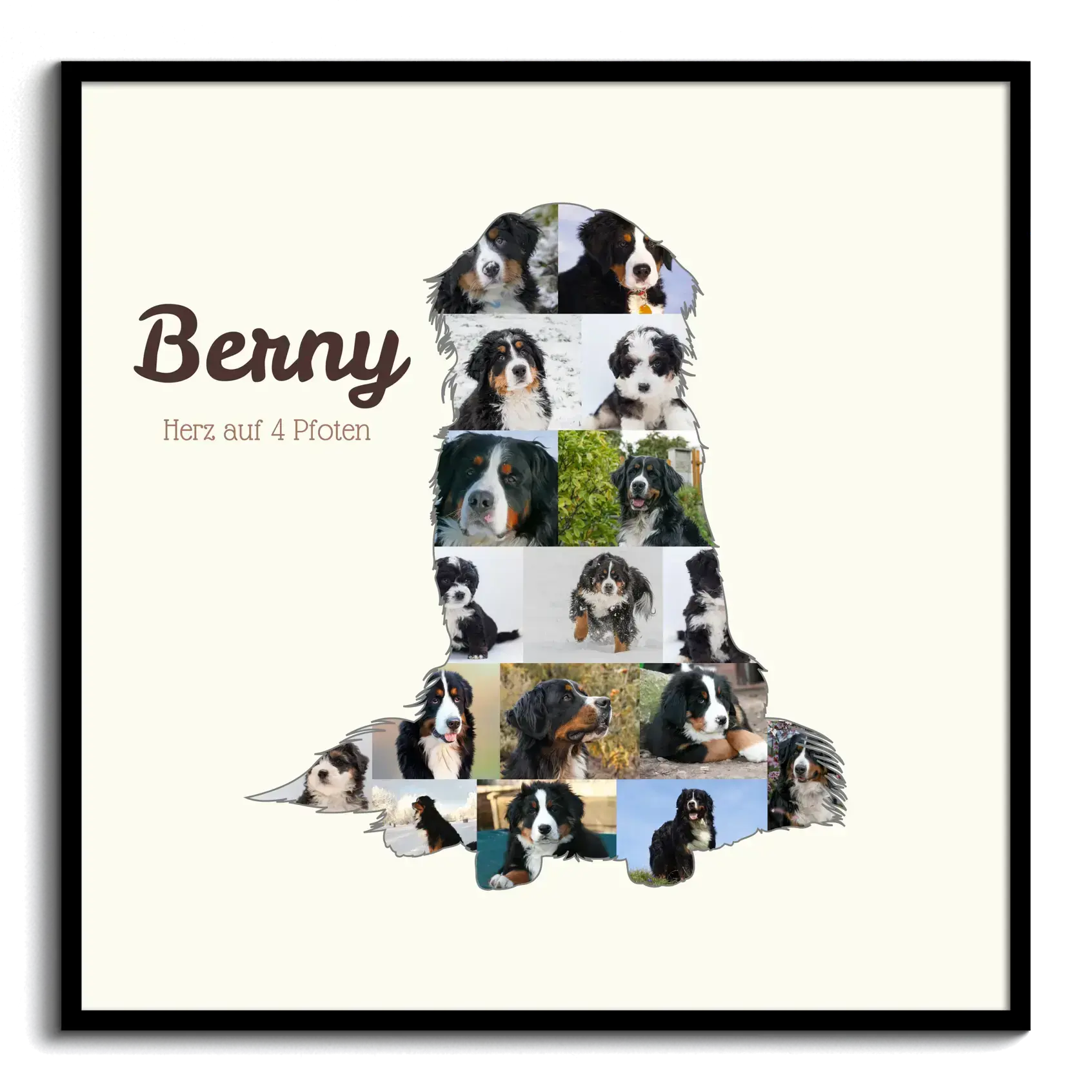 Collagen-Design mit Berner Sennenhund-Silhouette, personalisierbar mit bis zu 20 Fotos.