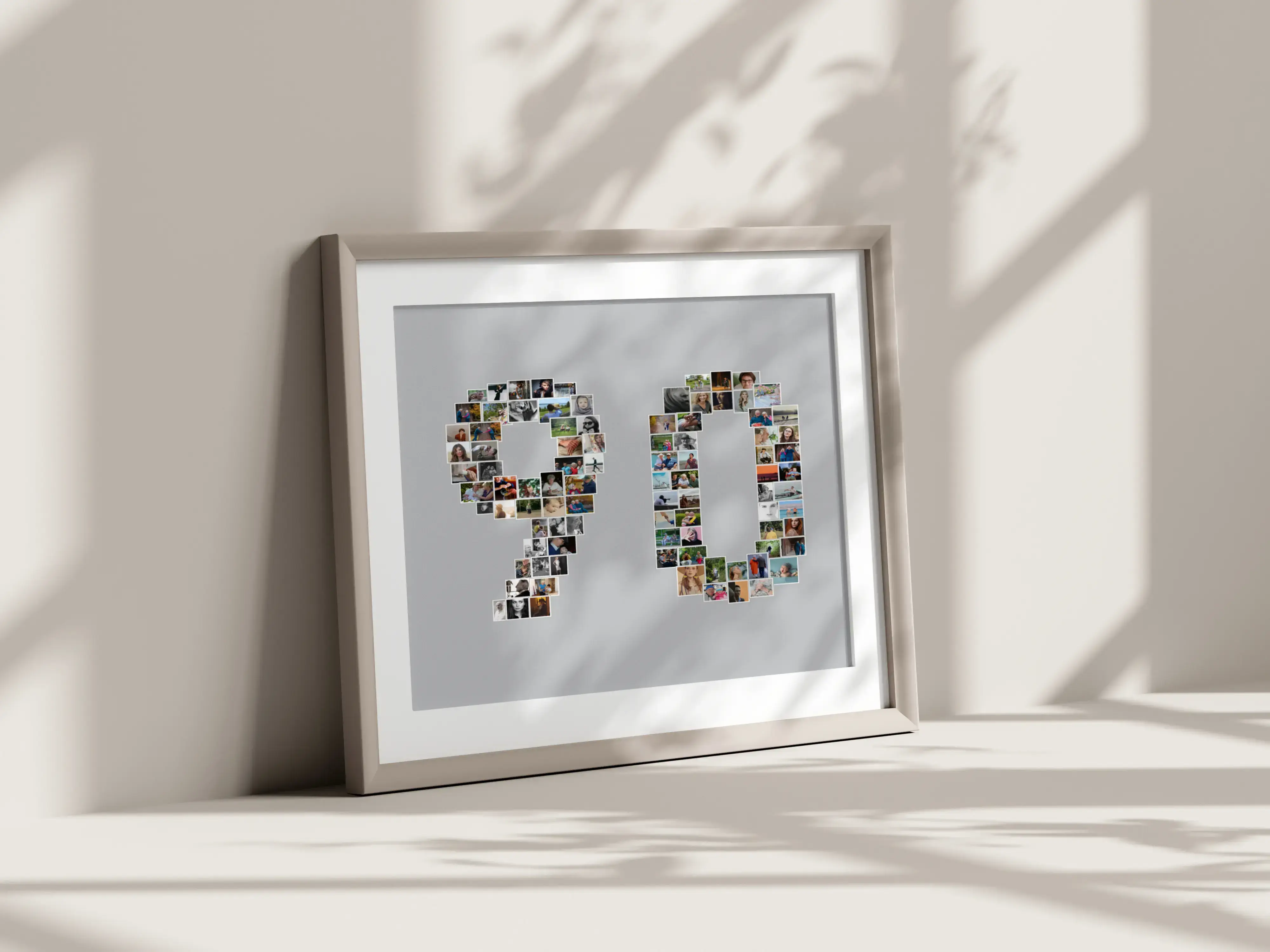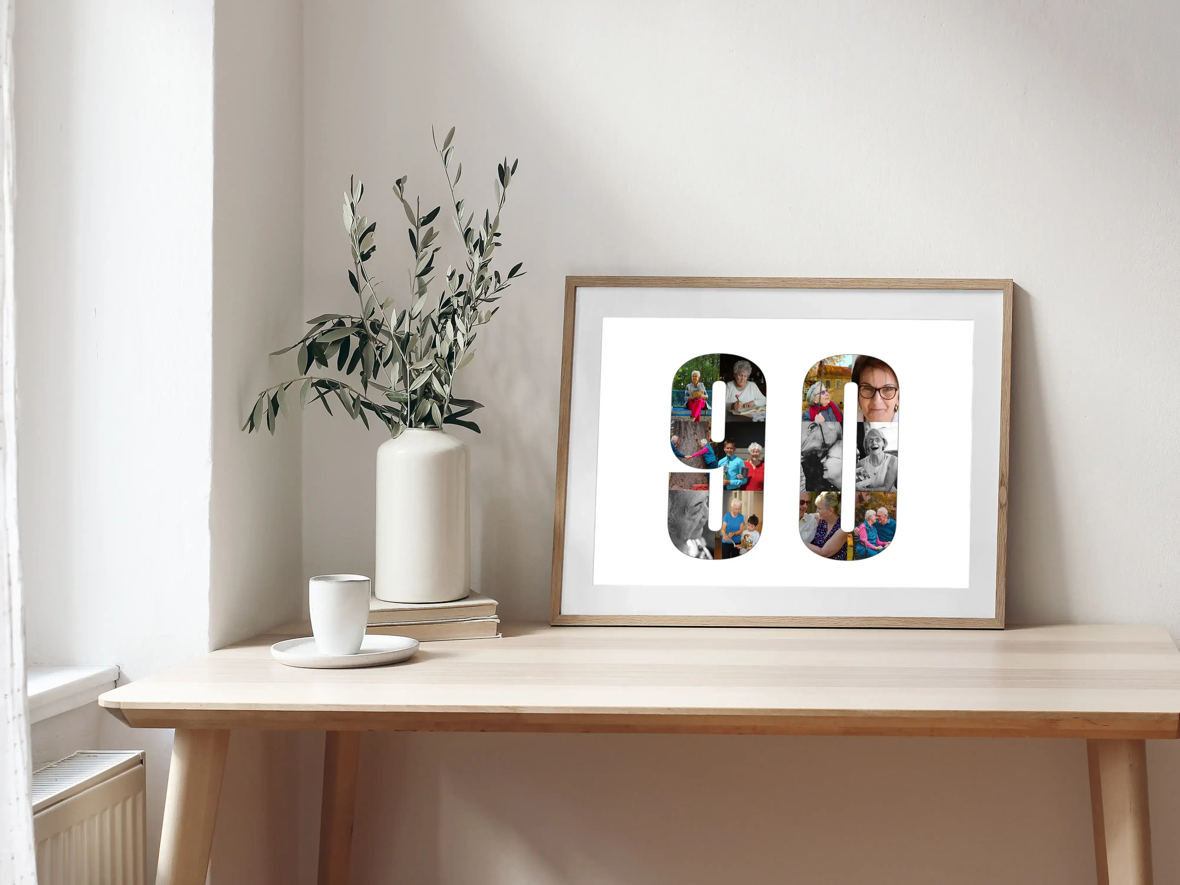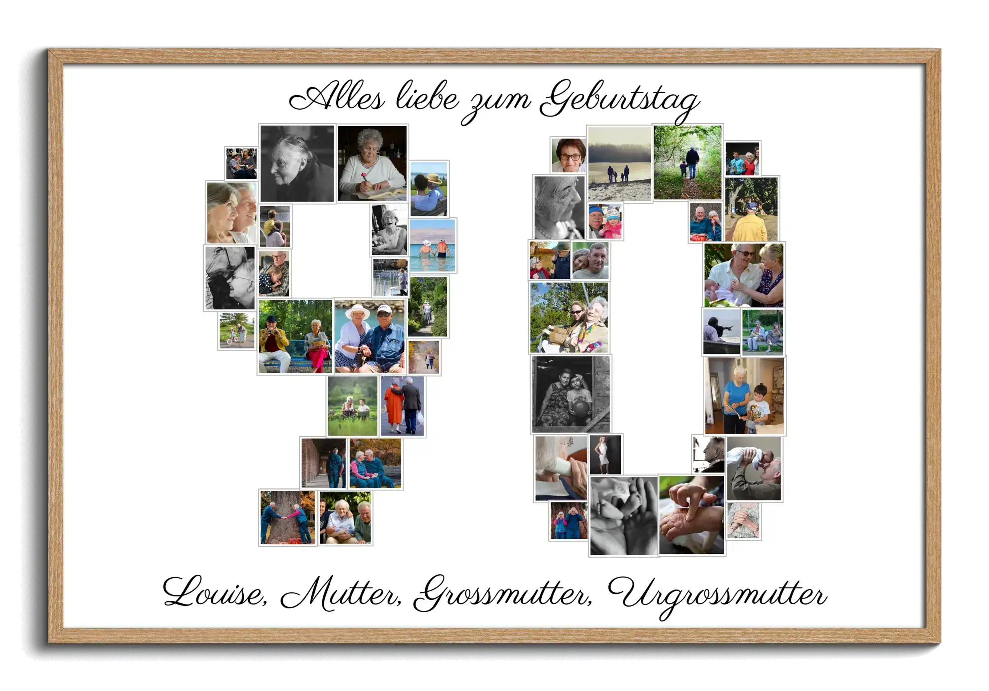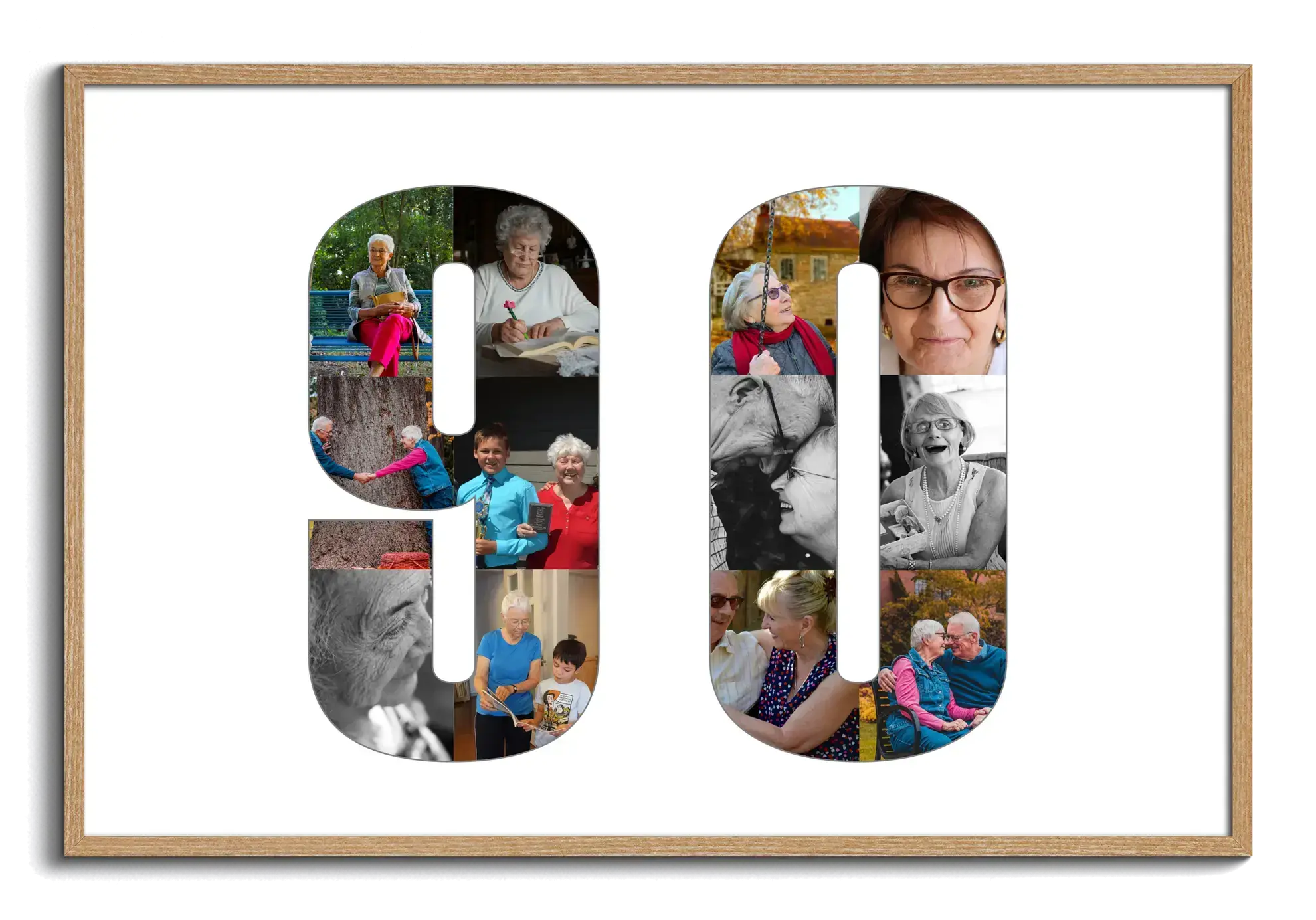 Fotocollage Zahl 90 erstellen - Perfektes Geschenk für neunzigsten Geburtstag oder Jubiläum