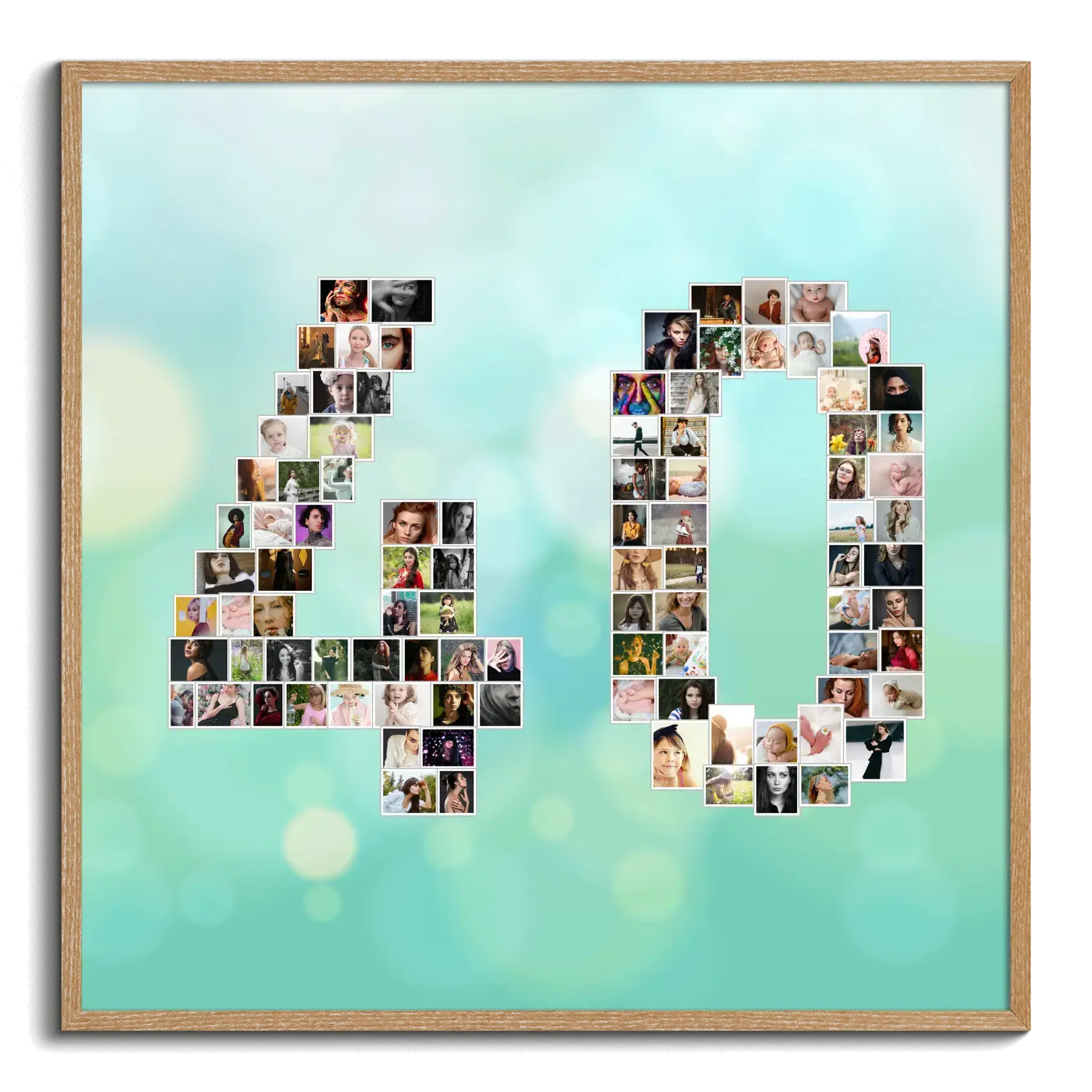 Unvergessliche Momente in der Zahl '40' als einzigartige Fotocollage festhalten.