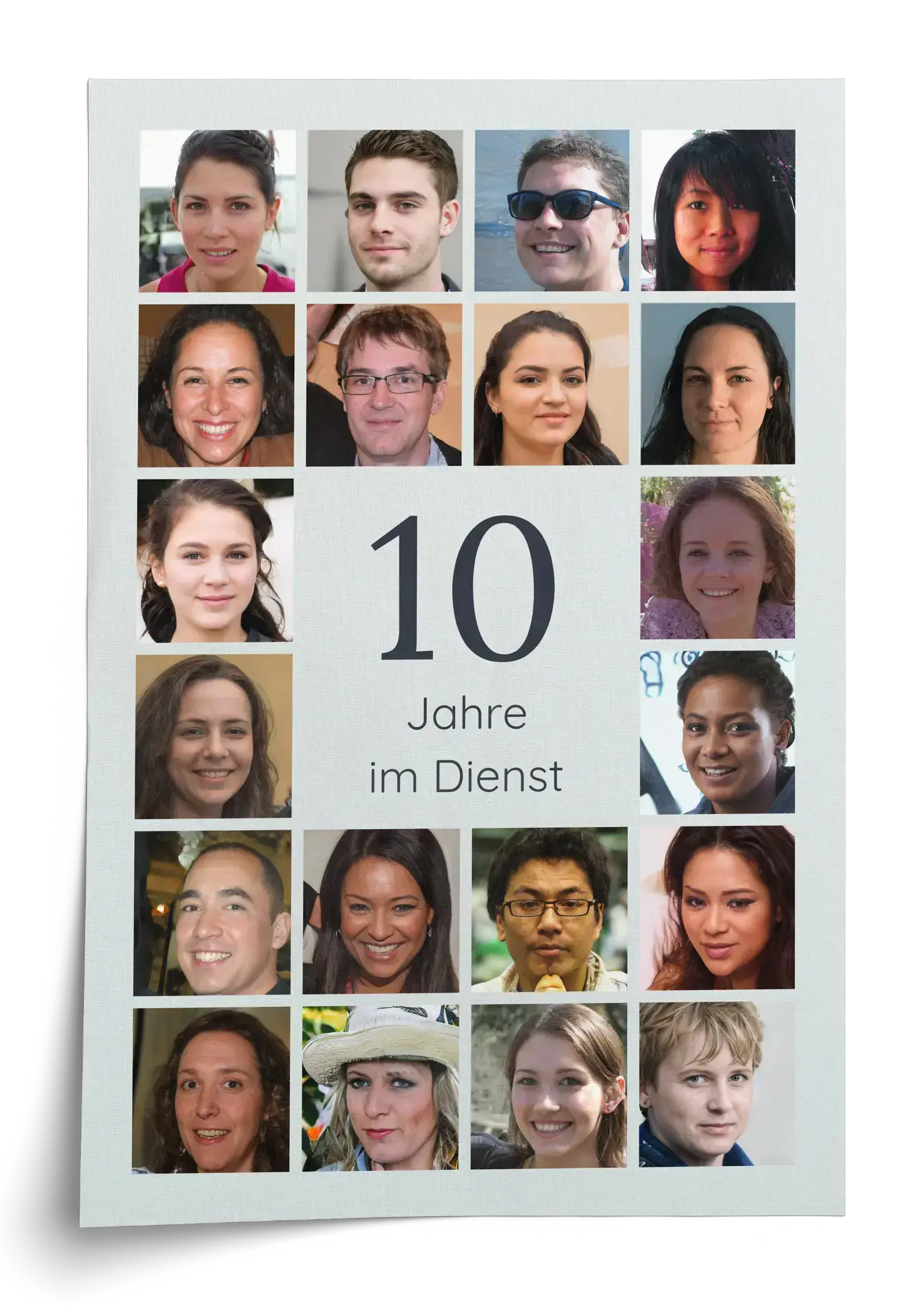 Zahl-Collage 10: große Zahl, Name, Gruß, 20–80 Fotos. Individuell für 10 Jahre Firma, Ehe, Verein.