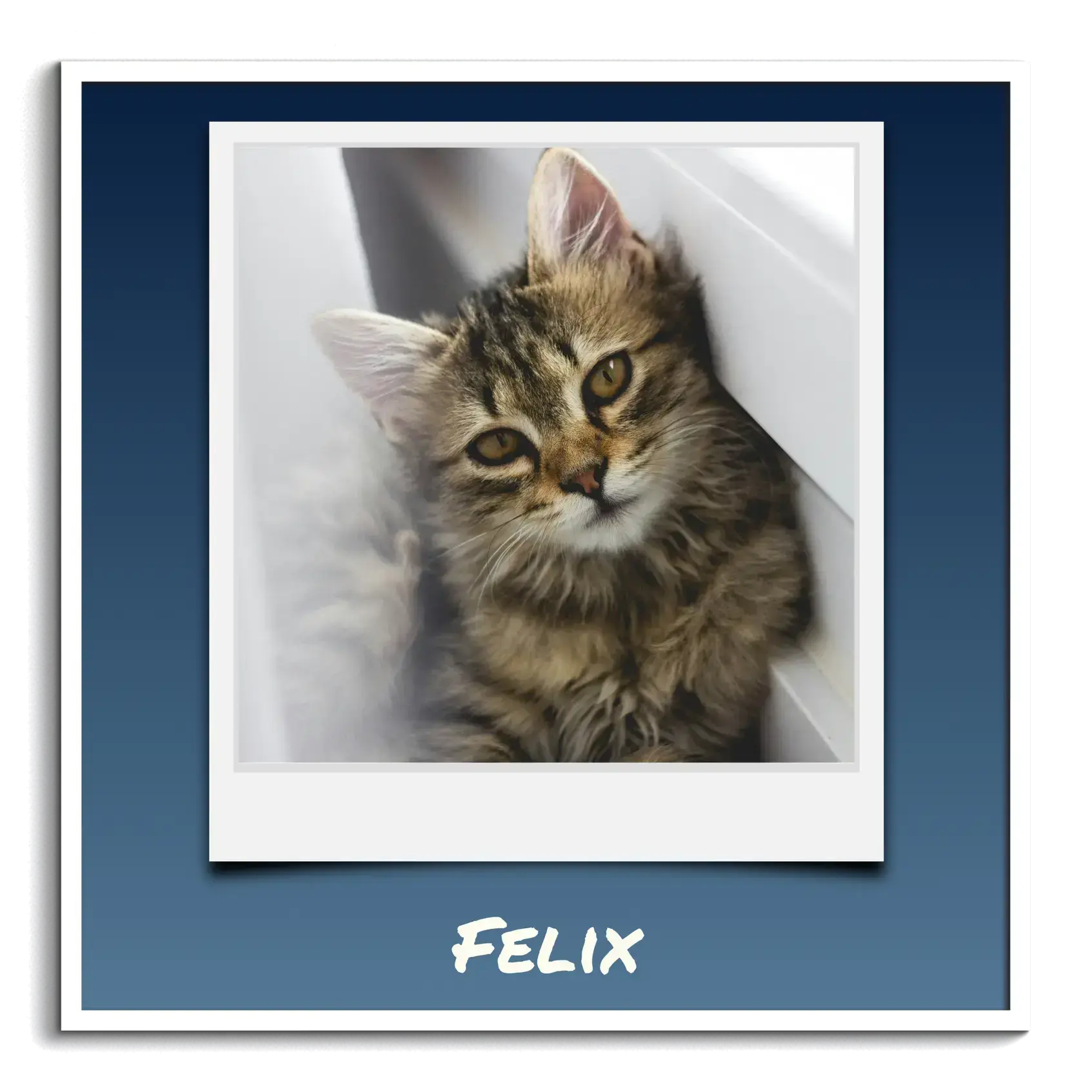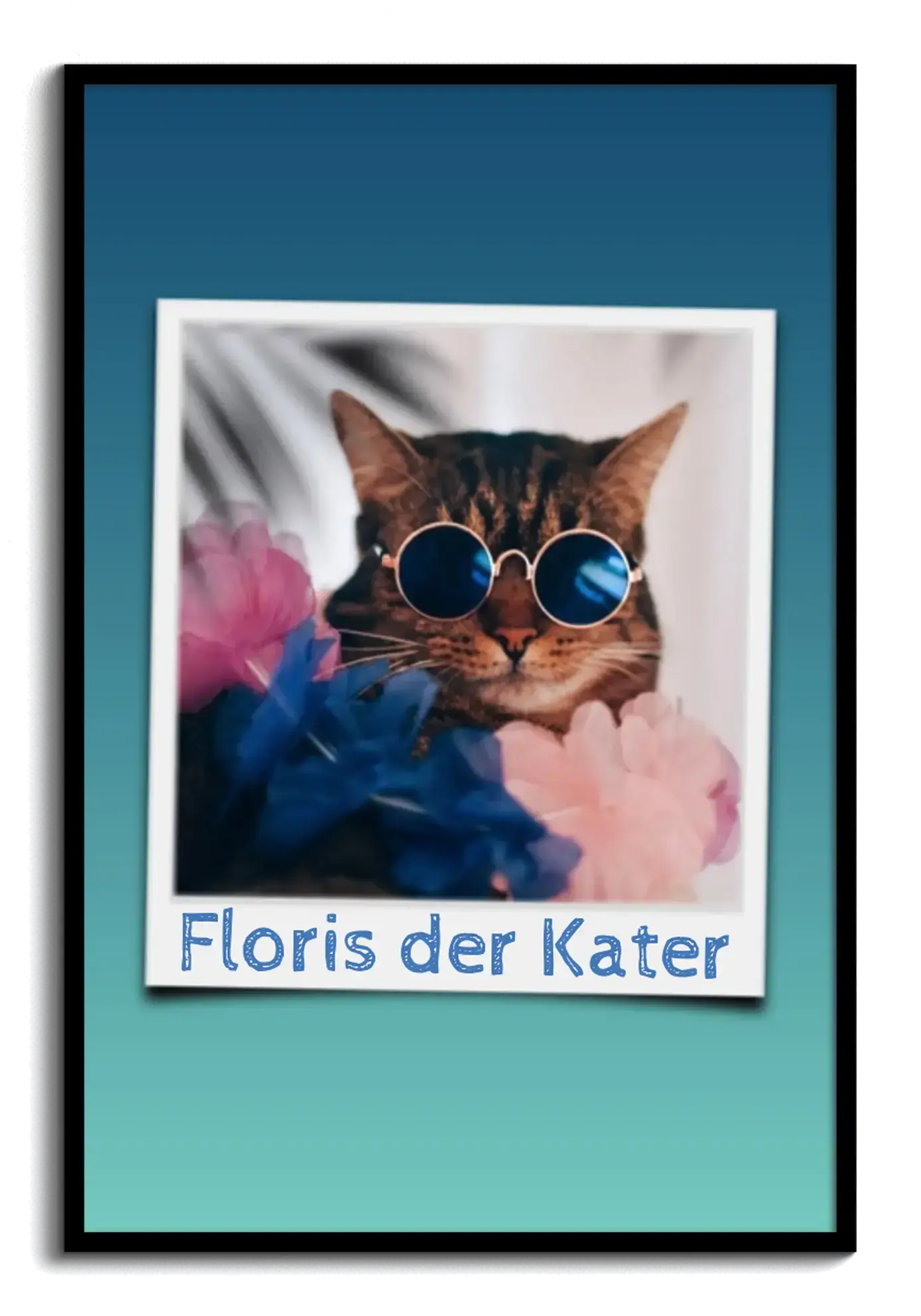 Katzenfotos als Polaroid-Collage mit individuellem Text, z. B. Floris der Kater oder Name der Katze