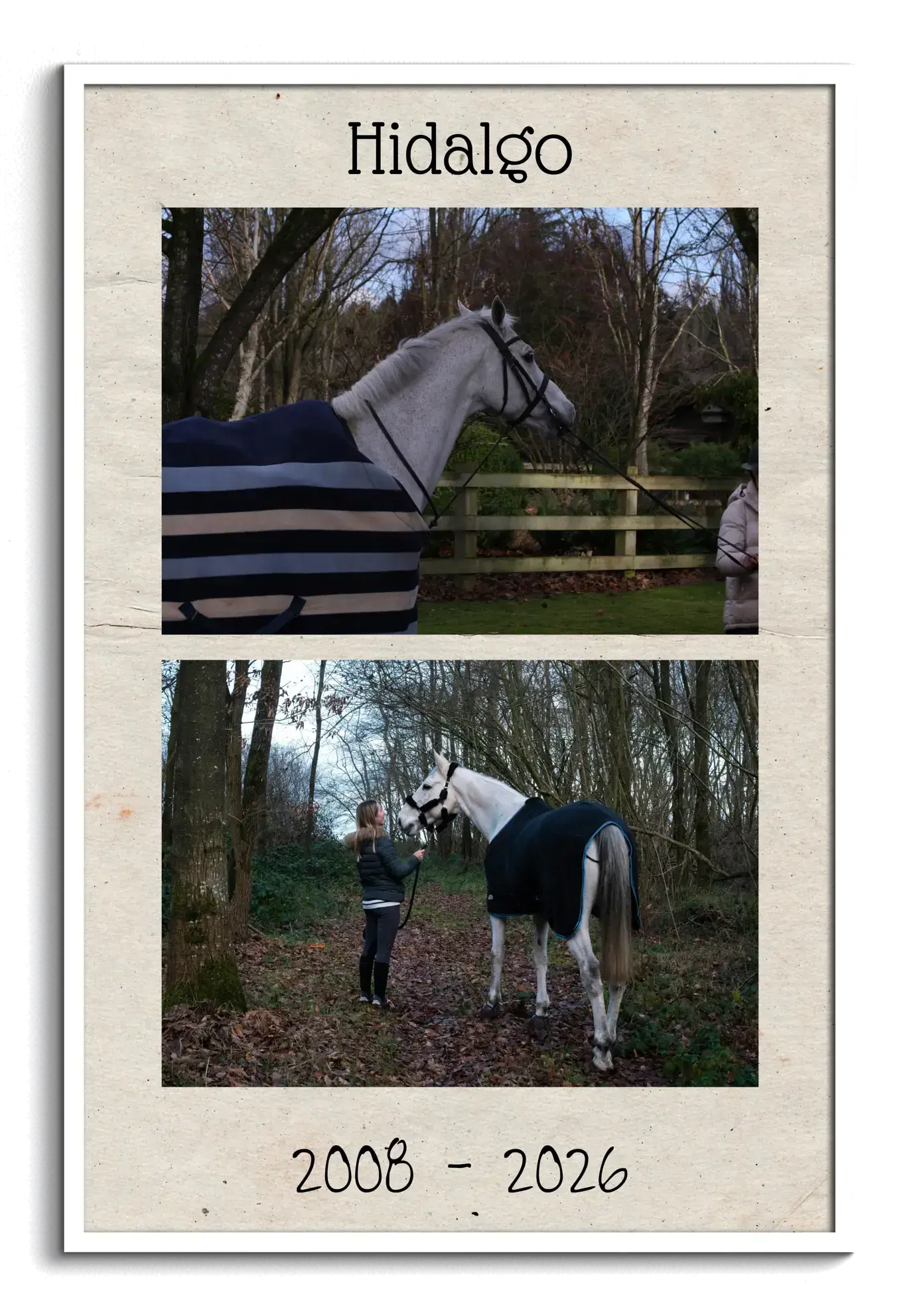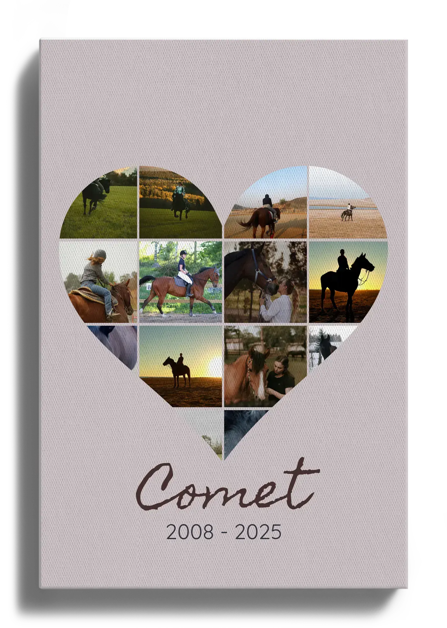 Diese Erinnerung passt als stiller Platz im Zuhause, in der Sattelkammer oder als persönliches Andenken im Albumformat an der Wand. Sie eignet sich auch als einfühlsames Geschenk für Menschen im Stall, für Reitbeteiligungen, Züchter oder Freunde, die das Pferd kannten. Ebenso kann sie für Jahrestage, Abschied, Dank an einen treuen Begleiter oder als Zeichen des Mitgefühls gestaltet werden.