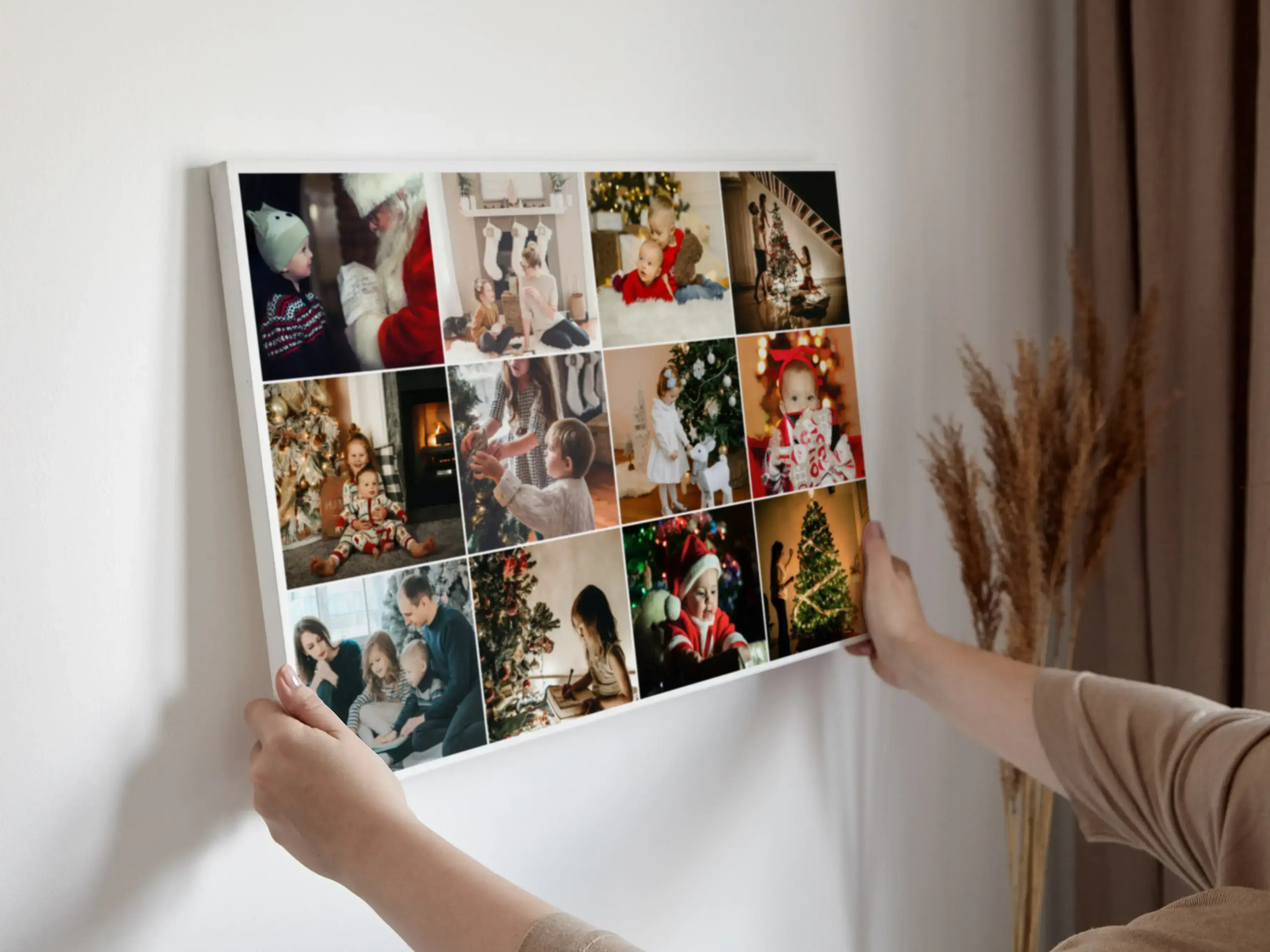 Erstelle jetzt deine persönliche Weihnachts-Collage: Sammle Momente von Weihnachten mit Familie, Freunden und Kindern – unterm geschmückten Tannenbaum, zwischen Lichterketten, Geschenken und Kerzen. So wird die Weihnachtszeit sichtbar und dein Fest bekommt einen Platz an der Wand.