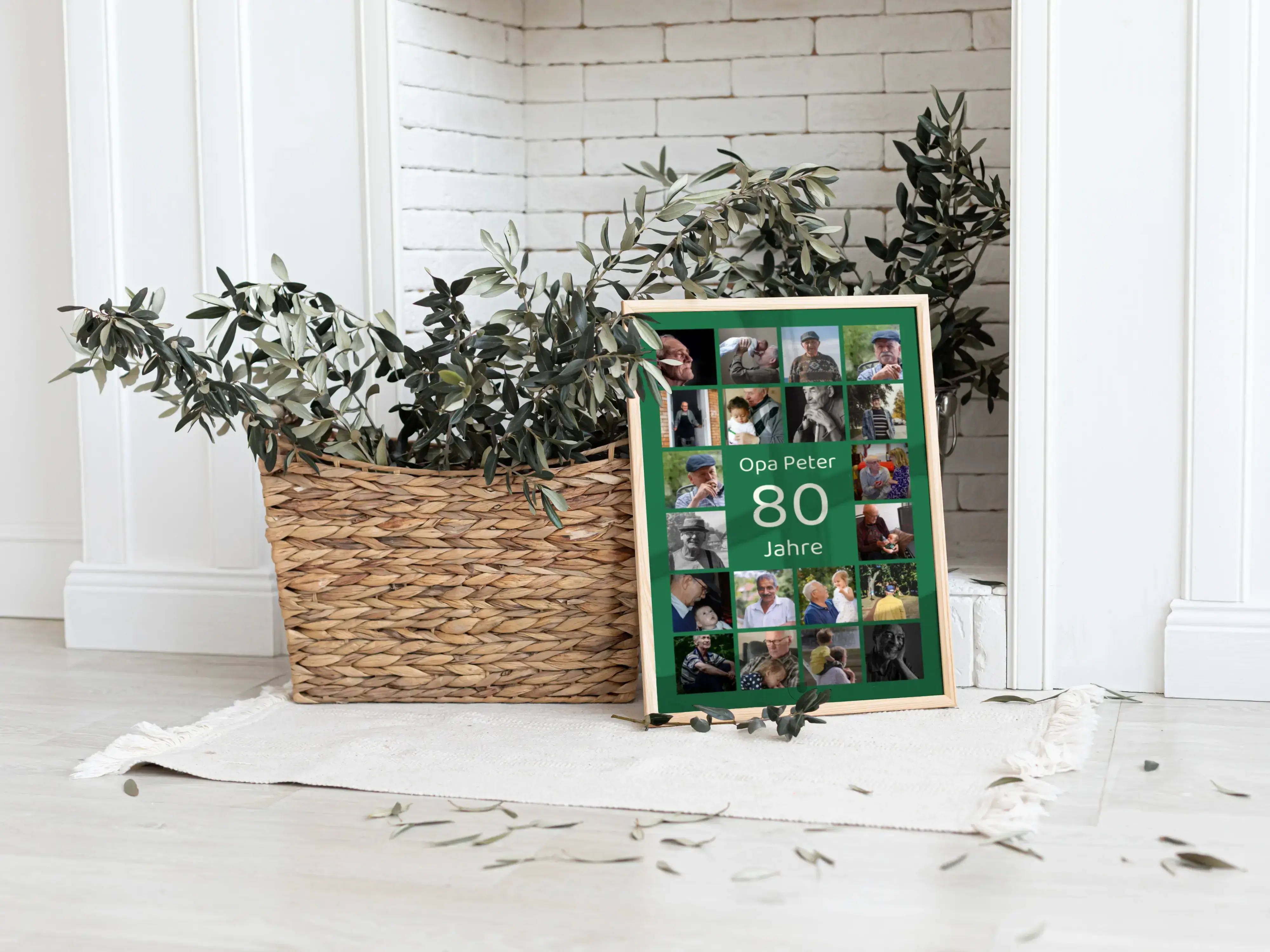 Zahl-Fotocollage 80 – gestalte dein Geschenk zum 80. Geburtstag & 80-jährigen Jubiläum