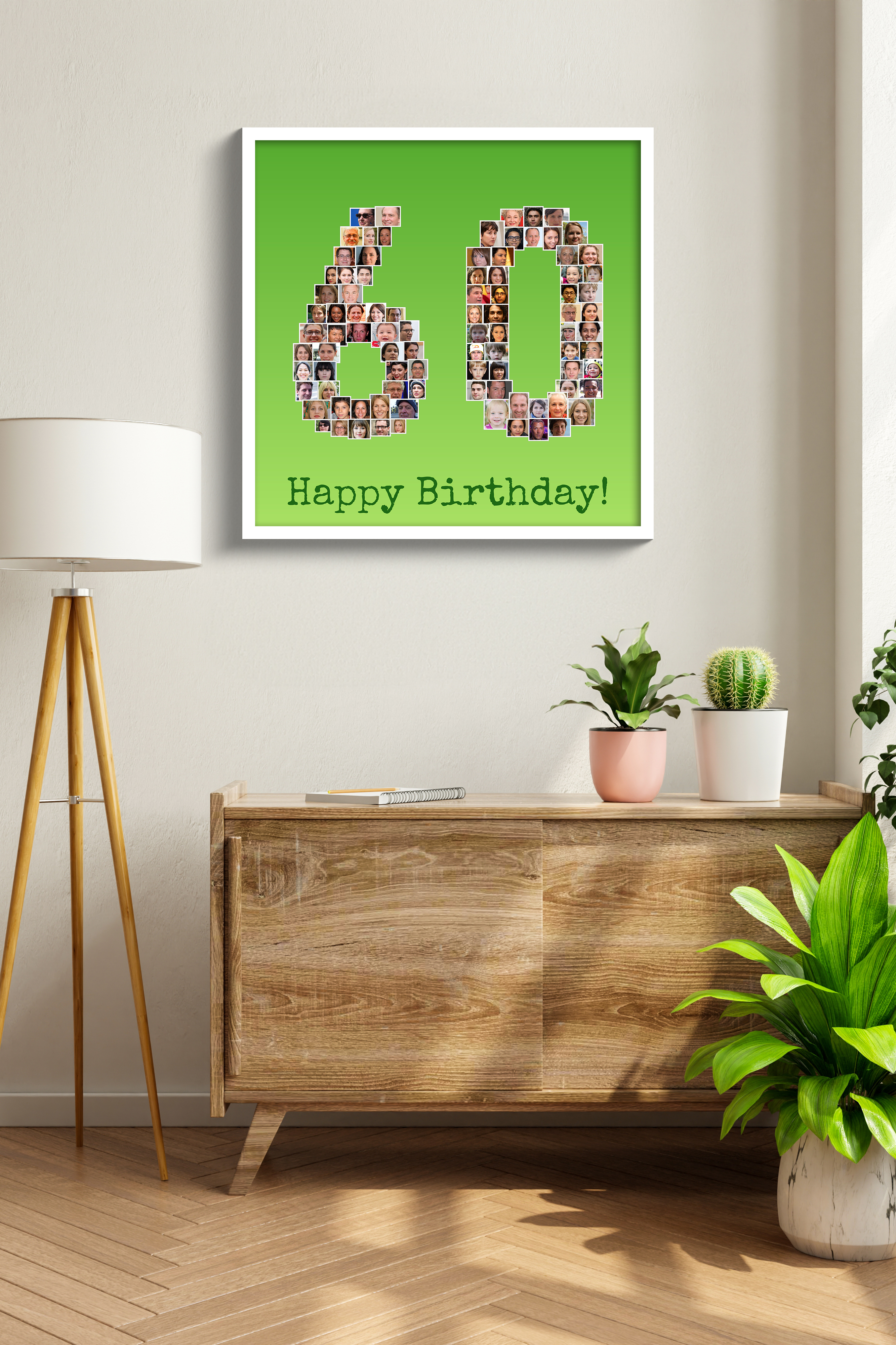"Gestalte jetzt die perfekte Überraschung für einen runden Geburtstag - eine individuelle Zahlencollage auf hochwertigem Alu-Dibond. Wähle bis zu 100 verschiedene Fotos aus und verwandle sie in eine große, sichtbare Zahl. Ein persönliches Andenken mit Emotionen und wunderbaren Erinnerungen, welches sicherlich jeden Jubilar begeistern wird.